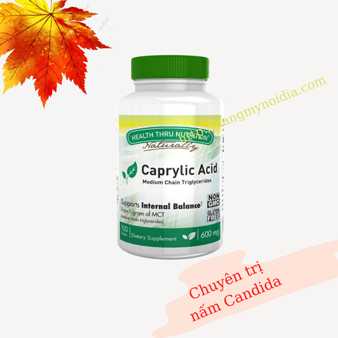 Caprylic Acid 600mg do hãng Health Thru Nutrition của Mỹ sản xuất. Sản phẩm đạt tiêu chuẩn kiểm định cGMP Hoa Kỳ, không chứa chất bảo quản và không làm từ thực phẩm biến đổi gen (NON GMO).