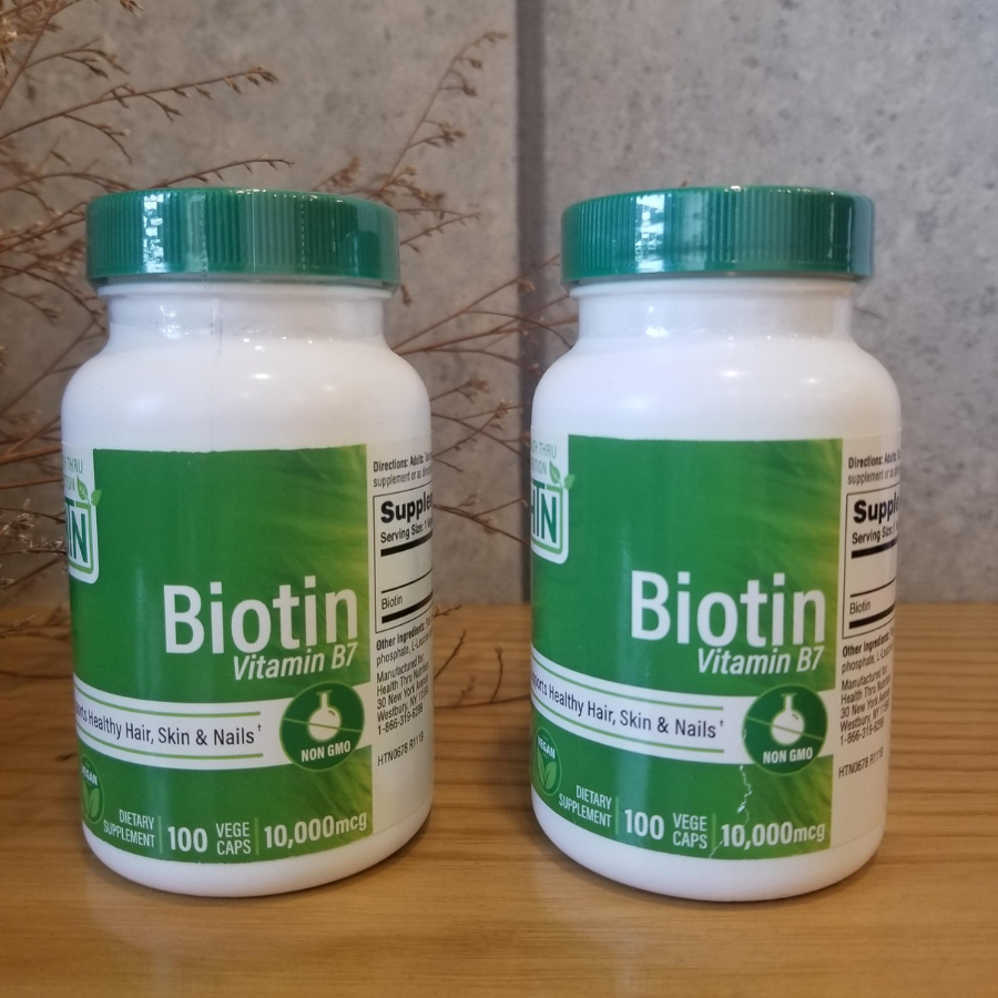 Biotin kích mọc tóc của Health Thru Nutrition bổ sung một hàm lượng lớn 10000 mcg chất dinh dưỡng thiết yếu Vitamin B7. Được pha chế với các thành phần thân thiện với người ăn chay, chất bổ sung chất lượng cao này phù hợp cho những người có chế độ ăn kiêng hạn chế.