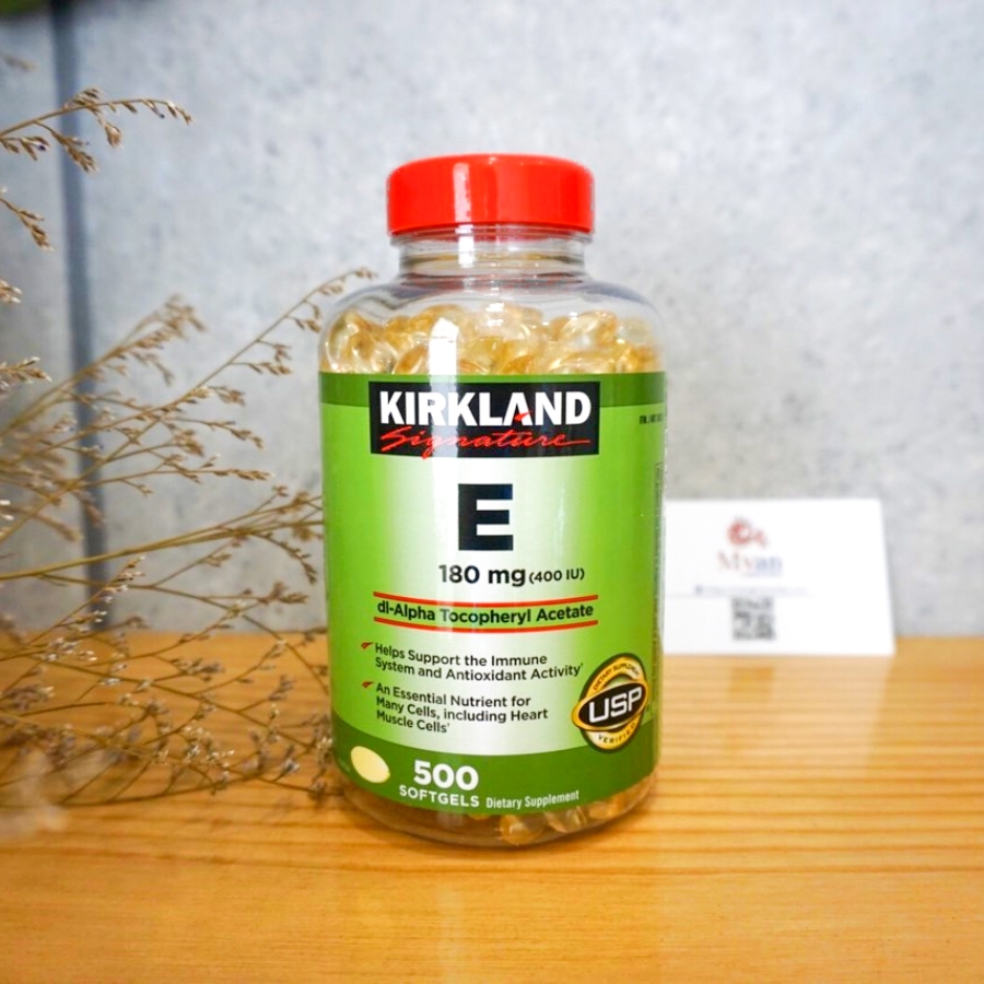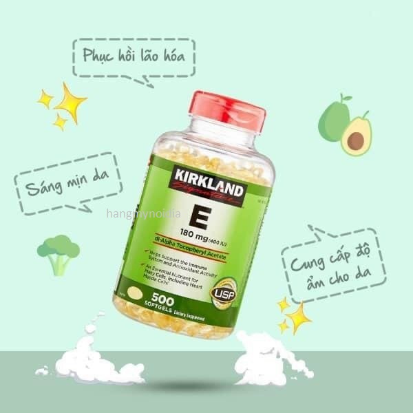 - Thành phần chính là vitamin E của Mỹ hãng Kirkland có hàm lượng 400IU vitamin E trong mỗi viên uống